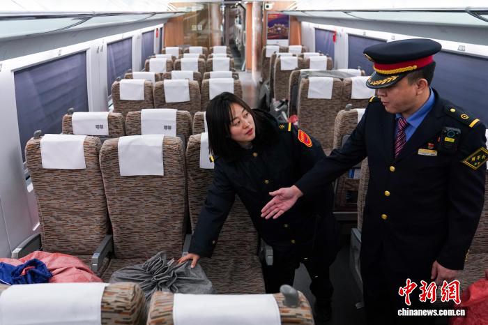 图为列车少取平安监视员查抄下铁上的速件。中新社记者 赵宇航 摄